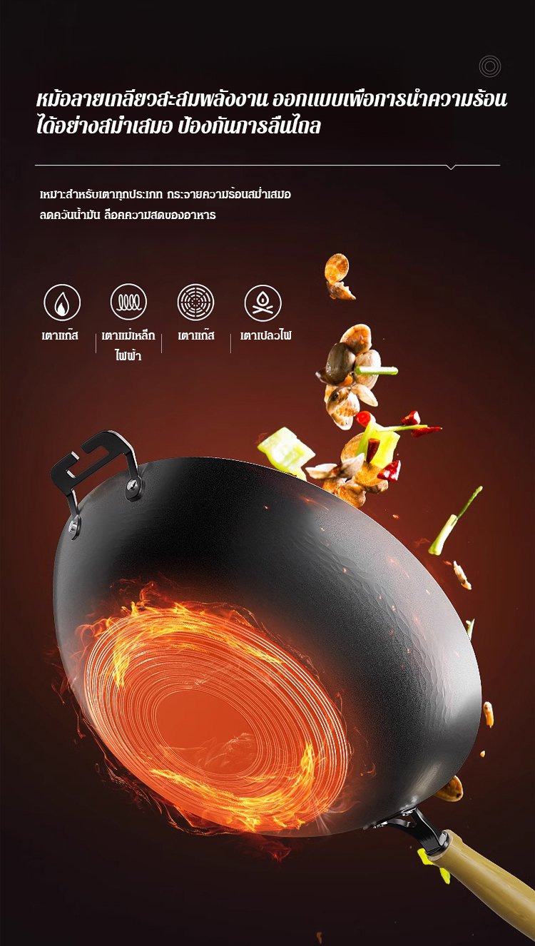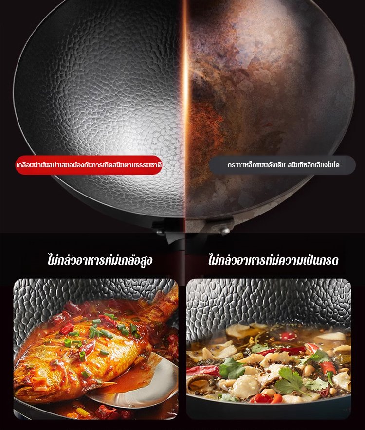 กระทะเหล็กหล่อลายค้อนทุบ ไม่มีชั้นเคลือบ ดีต่อสุขภาพ